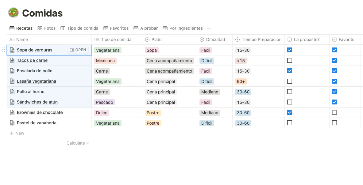 Frecuentemente necesito hacer la misma actualización en numerosos items de una base de datos. Vamos a mostrar con mi plantilla de recetas de comida. Notion te la hace fácil: