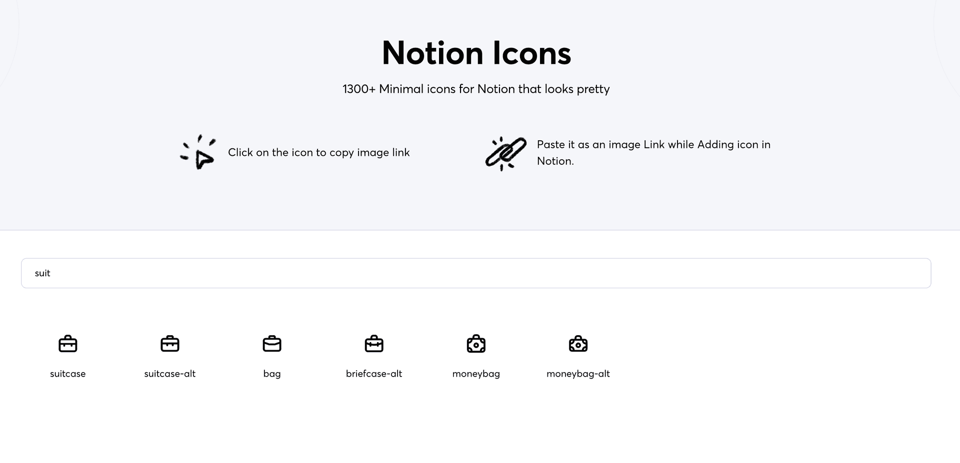 IconScout: Esta página se jacta de tener mas de 1300 iconos de Notion en un formato minimalista. Posee un buscador para poder encontrar el que te gusta (con busqueda en ingles). No tiene buscador de categorias. Para acceder, hace click aquí