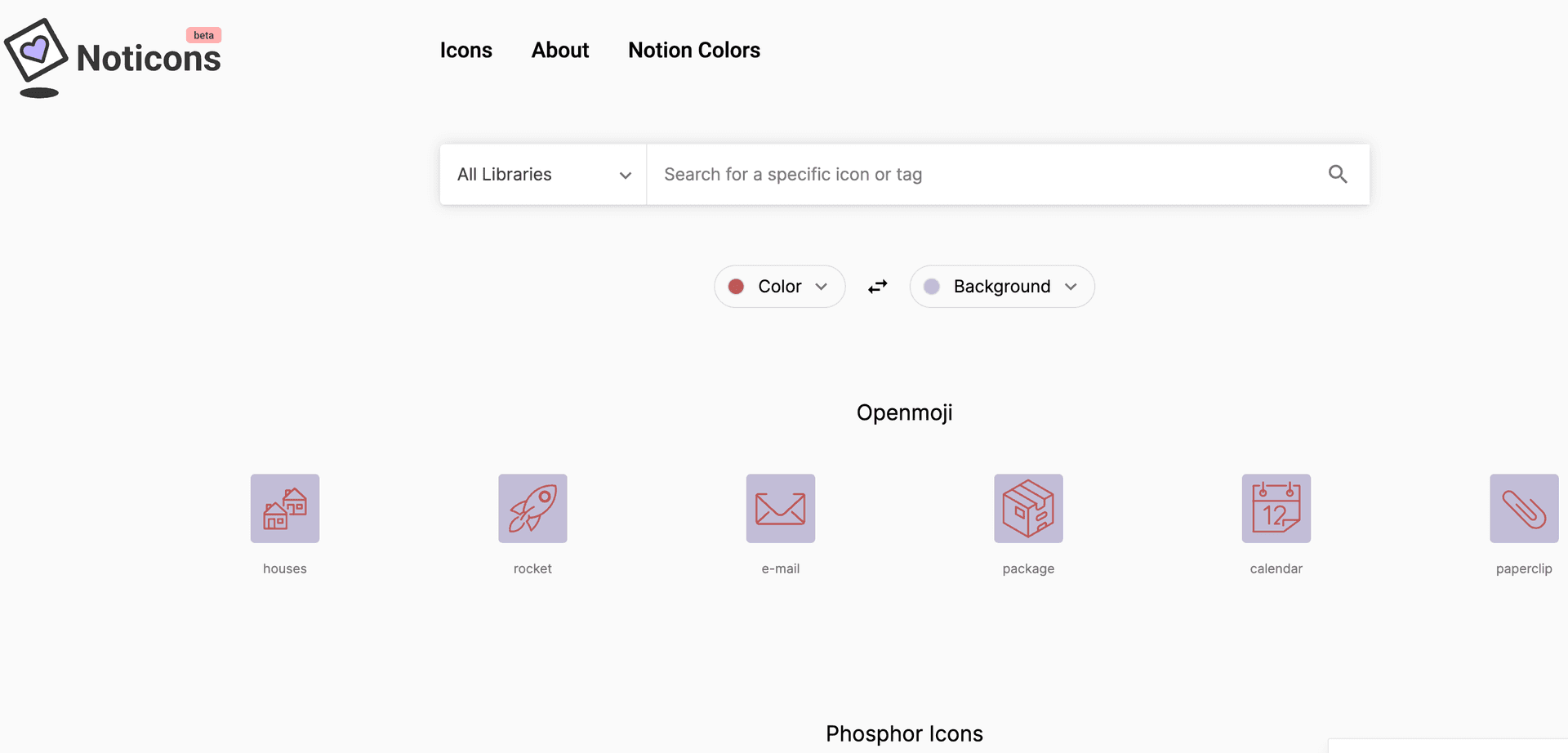 NotioIcons: Una web nueva que actualmente esta en beta. Esta muy bien hecha porque permite personalizar el color y el fondo del icono. Es una interesante solución desarrollada por una empresa de consultoria en Suiza. Podes acceder aquí.