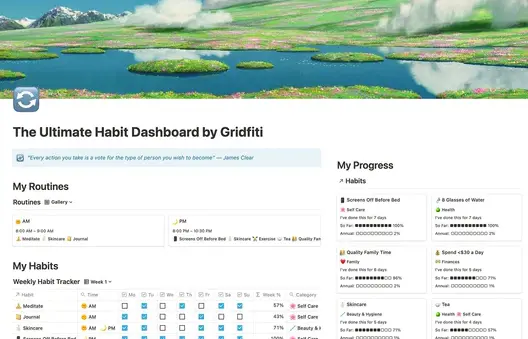 En el sector hábitos hay muchas opciones de plantillas gratuitas para poder elegir. Como consejo personal, siempre es bueno documentar los hábitos y llevar un mini control de de como están performando. Recomiendo leer el libro de James Clear de Hábitos atómicos para tener una visión refrescante de como llevar un nuevo hábito acabo y como eliminar los malos.