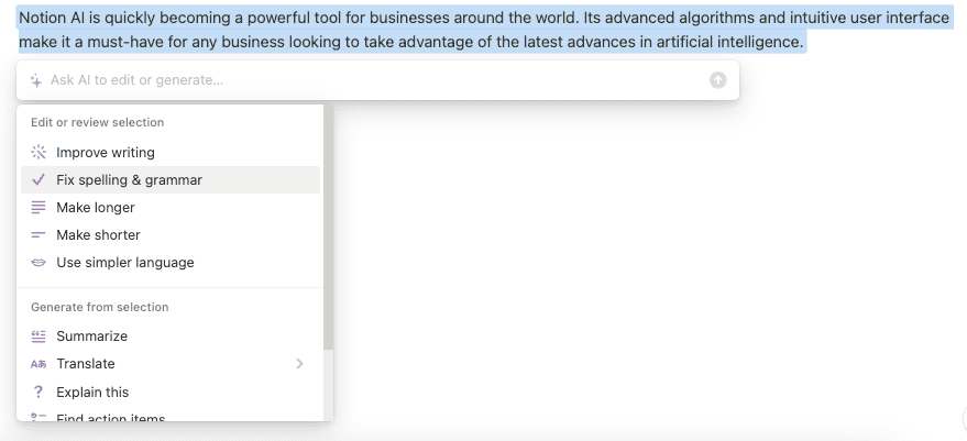 Si alguno de ustedes han probado ya el chatGPT saben un poco la calidad de respuesta que tiene al pedir que genere texto desde cero. Es impresionante. Muy útil para brainstorming o para generar contenido para redes sociales como para poner un ejemplo. Seguramente Notion ha entrenado el algoritmo de una forma especial para que sea más optimo para escritura, pero eso no lo puedo confirmar.
