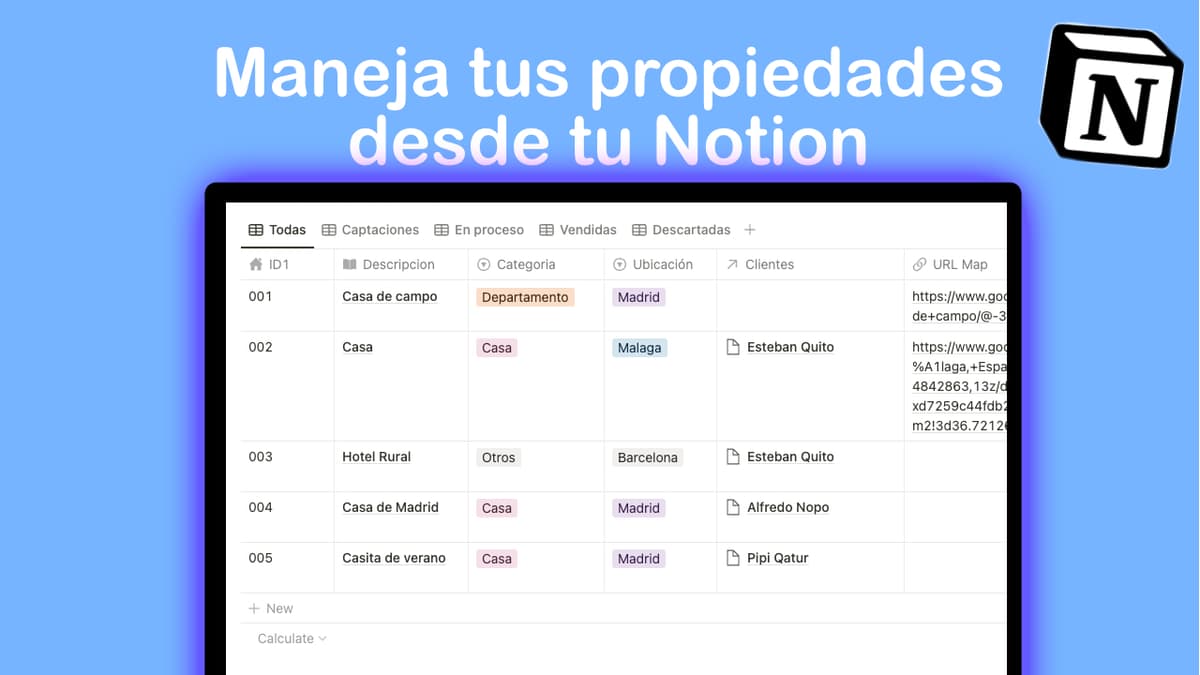 Manejo de propiedades para inmobiliaria - Plantilla de Notion