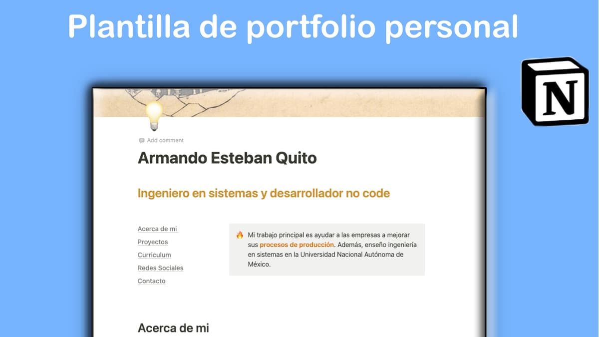 Una plantilla de Notion para construir tu propio portafolio en solo unos minutos.